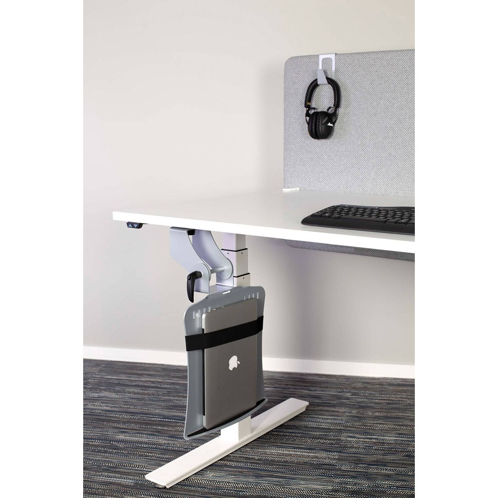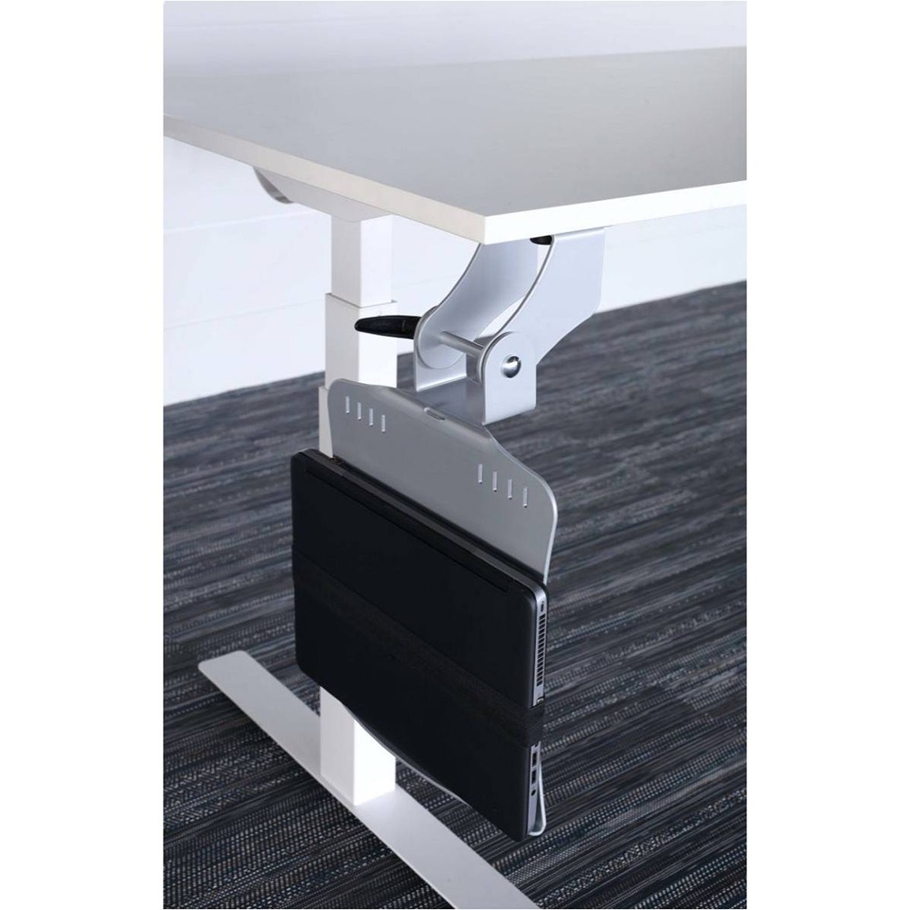 Beskrivning TwistIT är en smart datorhållare framtagen för mindre stationära datorer och laptops. Monteras under bord och vinklas/roteras för att få så mycket benutrymme som möjligt. Monteras med fördel utan glidskena.